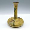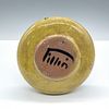 Glazed finish. Features teal and orange hues of a woman painted against a rich gold yellow background. Pillin signed on base.